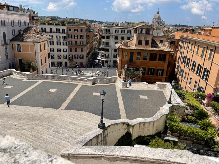 La scalinata di Trinità dei Monti, con la sua vista su Piazza di Spagna, è uno dei luoghi più fotografati di Roma. La fontana della Barcaccia, progettata dal Bernini, aggiunge fascino a questa elegante piazza.